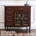 ステンドガラス扉のおしゃれなキャビネット。昔のイギリススタイルを基調としたデザインは輸入家具ならではの懐かしさを感じます。左側には引き出し5杯を備えているので収納力抜群!見た目以上にたくさん入る機能的なキャビネットです。リビングだけでなく、チェストの代わりとして寝室に置いても素敵です。ガラス部分はステンドガラスを使用し高級感あふれるクラシカルなテイスト。飽きのこないデザインと独特のエレガントさが、お部屋のインテリアをより一層素敵にしてくれます。