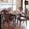 当店オリジナルの英国調ダイニングセットです。4~6人で使える7点セット。イギリス様式のクラシカルで落ち着きのある気品漂うデザインです。チェアはPVCレザーを使っているので、汚れた時は簡単に拭いてお手入れができます。職人の手により一つ一つ丁寧に彫刻された繊細なディテールは、美しく温かみがあります。アンティーク風のクラシックインテリアをお楽しみください。