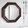 風水でも人気 イタリア製 八角形 ウォールミラー(壁掛け鏡) ウッド 52×52cm【送料無料】