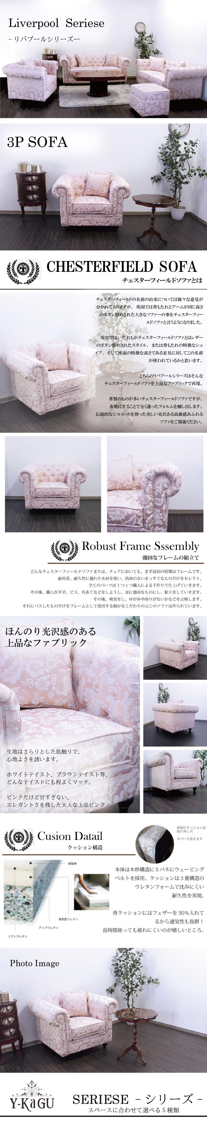 いつの時代にも好まれる英国を代表とするチェスターフィールドソファ。人気のリバプールソファからかわいらしピンクカラーが新作で登場です!かわいらしすぎないよう甘さを抑えたサーモンピンクが大人エレガントな雰囲気を演出します。流行とはまた違いますがどんなティストにもぴったり当てはまる上品さと明るさを備えたソファ。エレガントな雰囲気ですが、デザインはしっかりした重厚感感じるデザイン。背もたれは錨打ちになっているクッション仕上げで高級感も抜群!生地はさらりとした肌触りで心地よさを誘います。ブラウンティスト、ホワイトテイスト、シンプルモダン等どんなティストでも◎な万能ソファ。飽きがこなくてお勧めです♪座面の内部の構造はSバネに高級ウレタンを使用適度な硬さにして腰に負担がかからないようにしています。座面、背のクッションの取り外しができ、掃除もらくらく、常に清潔。そんなソファもこのたび大特価にてご提供です!!こちら、新作ではありますが数に限りがございますので 「コレだ!!」と思ってくださりましたらお早めに♪