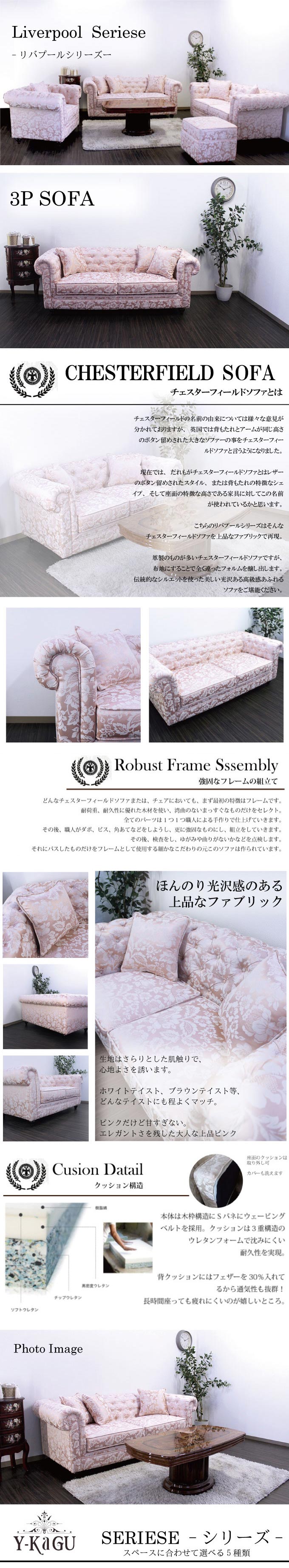 いつの時代にも好まれる英国を代表とするチェスターフィールドソファ。人気のリバプールソファからかわいらしピンクカラーが新作で登場です!かわいらしすぎないよう甘さを抑えたサーモンピンクが大人エレガントな雰囲気を演出します。流行とはまた違いますがどんなティストにもぴったり当てはまる上品さと明るさを備えたソファ。エレガントな雰囲気ですが、デザインはしっかりした重厚感感じるデザイン。背もたれは錨打ちになっているクッション仕上げで高級感も抜群!生地はさらりとした肌触りで心地よさを誘います。ブラウンティスト、ホワイトテイスト、シンプルモダン等どんなティストでも◎な万能ソファ。飽きがこなくてお勧めです♪座面の内部の構造はSバネに高級ウレタンを使用適度な硬さにして腰に負担がかからないようにしています。座面、背のクッションの取り外しができ、掃除もらくらく、常に清潔。そんなソファもこのたび大特価にてご提供です!!こちら、新作ではありますが数に限りがございますので 「コレだ!!」と思ってくださりましたらお早めに♪