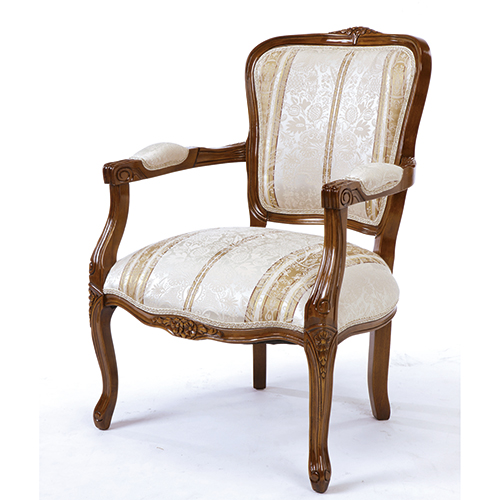 ストライプホワイトの生地は高級感があり、上品でおしゃれな印象です。シンプルで現代的なお部屋のアクセントにも素敵に楽しめますし、和風のお部屋にもモダンに置いていただけます。フレーム部分の彫りもシンプルで素適です!猫脚のラインも美しいシリーズです。サロンチェアーはオシャレにゆったりとお座りいただけます。掃除機もかけやすいのが嬉しいですね♪フィオーレシリーズのサロンソファーやセンターテーブルもオススメです!ブラウンのヨーローピアンクラシカルなデザイン家具は、今お使いの家具に合わせやすいのが特徴です。エレガントで高級感のあるフィオリーシリーズのブラウン色です。種類も豊富なシリーズなので、コーディネートして楽しんでいただけます。 素材本来の良さを引き立たせるため、余計な装飾は使わず、シンプルなデザインで作りました。 落ち着きのあるこちらの家具は長年使っているうちに我が家にとってかけがえのない大切な家具となるでしょう。また、年月を経ることによって、私達の手の油分が家具に馴染み何ともいえない光沢感が木に現れます。たった一つの貴方だけの家具に仕上げて行っていただける。そんなシリーズです。★☆関連ワード☆★フィオーレ,Fiore,fiore,クラシック家具,猫脚家具,ヨーロピアン家具,アンティーク家具