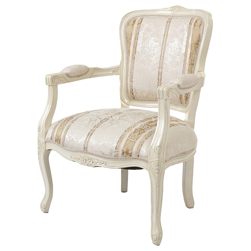 ストライプホワイトの生地は高級感があり、上品でおしゃれな印象です。シンプルで現代的なお部屋のアクセントにも素敵に楽しめます。フレームのちょっとした彫りもポイント!猫脚のラインも美しいシリーズです。サロンチェアはオシャレにゆったりとお座りいただけます。掃除機もかけやすいのが嬉しいですね♪フィオーレシリーズのサロンソファーやセンターテーブルもオススメです!なんといっても白色に明るく品のある生地で、お部屋がパッと明るくなります。白いお色は圧迫感をあまり感じさせないのが特徴です。年齢層も幅広く楽しんで頂けるヨーロピアンクラシックなデザインが嬉しいですね!インテリアも気分も明るくなるフィオーレの白い家具達です♪たった一つの貴方だけの家具に仕上げて行っていただける。そんなシリーズです。 素材本来の良さを引き立たせるため、余計な装飾は使わず、シンプルなデザインで作りました。 落ち着きのあるこちらの家具は長年使っているうちに我が家にとってかけがえのない大切な家具となるでしょう。また、年月を経ることによって、私達の手の油分が家具に馴染み何ともいえない光沢感が木に現れます。たった一つの貴方だけの家具に仕上げて行っていただける。そんなシリーズです。★☆関連ワード☆★フィオーレ,Fiore,fiore,クラシック家具,猫脚家具,ヨーロピアン家具,アンティーク家具
