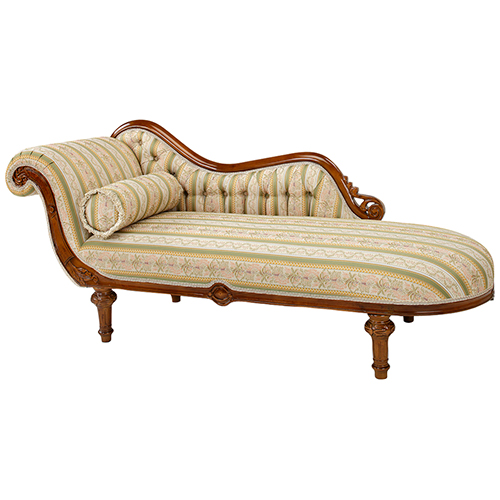 こちらのカウチは流れる様な曲線がとっても美しいです。グリーンストライプの生地は爽やかで高級感のある上品な印象です。丸い筒型のクッションが1つ付いてくるのも嬉しいポイント♪脚の形にも特徴がありフレーム部分のディテールも美しいですね!ゆったりと横になってくつろぎたくなるカウチです。ブラウンのヨーローピアンクラシカルなデザイン家具は、今お使いの家具に合わせやすいのが特徴です。エレガントで高級感のあるフィオリーシリーズのブラウン色です。種類も豊富なシリーズなので、コーディネートして楽しんでいただけます。 素材本来の良さを引き立たせるため、余計な装飾は使わず、シンプルなデザインで作りました。 落ち着きのあるこちらの家具は長年使っているうちに我が家にとってかけがえのない大切な家具となるでしょう。また、年月を経ることによって、私達の手の油分が家具に馴染み何ともいえない光沢感が木に現れます。たった一つの貴方だけの家具に仕上げて行っていただける。そんなシリーズです。
