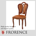 こちらのチェアーは、お洒落で格好いい、ブラウン色の合皮素材で作られています。なんといっても、汚れてもサッと拭き取れるのが合皮の良さです。フレーム部分に光沢感があるので、このブラウンの合皮がとっても格好よく高級なイメージでご使用いただけます。またビス打ちがお洒落。 今お使いのダイニングのお椅子を替えたい方や、インテリアのポイントのお椅子として、もちろんフローレンスシリーズのダイニングセットで合わせて頂くと、グッとインテリアのグレードが上がりますよ。 優雅で気品のあるフローレンスシリーズ。重厚感のある中にゴールドのアクセントが高級感を醸し出します。 素敵な時間をエレガントにお過ごしいただける、そんなシリーズです。