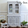 フランス カントリーコーナー Country Corner ELEGANCEコレクション 食器棚 シャビーなグレーカラーのカップボード。 まっすぐな直線を意識した18世紀のフランスのトレンドをそのまま再現。 上段は網目のメッシュ素材を使い 棚板部分にはエレガントなモチーフのアンティークなアクセントを施してあります。 味わい深いディテールでフレンチシャビーな空間をお楽しみください。