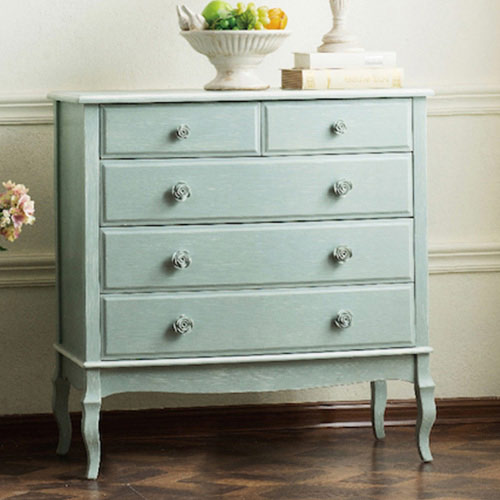 洗練された本場のフレンチブルーが可愛いレコルテシリーズ。こちらは衣類だってたっぷり収納できる4段チェスト。ローズのつまみがとてもおしゃれでワンポイントになっております。私自身、初めてこの家具に出会った時、久しぶりに胸が高鳴りワクワクしました。今まで見たこともないこんなおしゃれな家具が合うこと自体に感動を覚え、どうしても日本に持っきて、皆様にご紹介したくなりました。チェストはリビングや玄関先の見せ場として置かれても良いですし、寝室など、マイルームに置かれて自分の大切なものを収納するのにも◎また、このレコルテシリーズはシャビーシックな作りとなり、自然に使ってきたようなほんのりかすれた塗装や加工が施されています。アンティーク家具風の雰囲気で仕立てたこちらのチェスト。まるでパリのお部屋の一角みたい。また、ブルーの家具はあのSATCのキャリーのお部屋のセットとしても有名。このようなカラーは日本にはない輸入家具ならでは。フレンチブルーの素朴な色味で仕上げ、大人っぽい落ち着いた佇まい。自分だけのとっておきのフレンチシックなお部屋を楽しんでください♪※【必ずお読みください】こちらの商品は主に輸入家具となっており、海外での生産となります。また、ヨーロッパ・ドバイ・アメリカなどといった海外向けに作られている商品となります。ほとんどが手作り・手塗装で制作されております。一点一点が手作業のため、塗装・仕上がりには個体差がございます。弊社での検品を行い、修正できる部分は修正してからの発送をしておりますが、アンティーク塗装仕上げ(離れると見えない程度)となっている個所がございますこと、予めご理解・ご了承の上、お買い求めください。