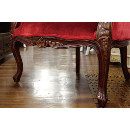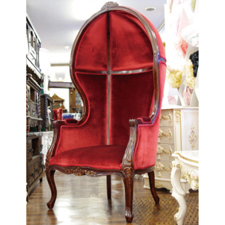 【受注生産品】リラックスタイムを叶える夢のようなチェアの登場です!マホガニーのフレームに赤のベルベット生地を使用。座ってる人を囲むようなデザインで作られておりますので、実際座ってみると真正面以外は視野が遮断され、まるで別世界にいるような感じになります。 癒しの空間を兼ねてのヒーリングチェアです♪※手作り商品です。フレームはマホガニーなど木材を使用しております。その為、自然な木の材質感が出る場所もございます。予めご了承ください。