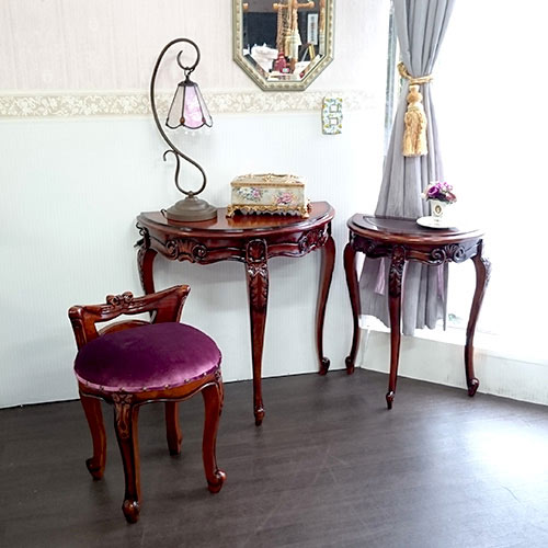 重厚感があって輸入家具ならではの猫脚と、手彫りの家具。