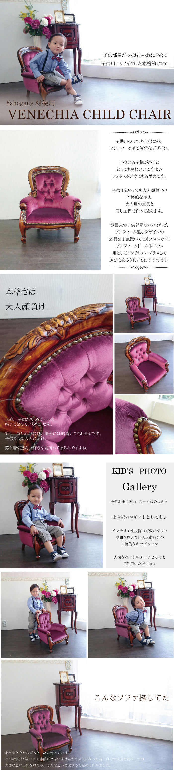 | 製品名: | チャイルドアームチェア(ベロアパープル) 椅子 イス おしゃれ 猫脚 茶 ブラウン アンティーク 木製 マホガニー ベネシア |