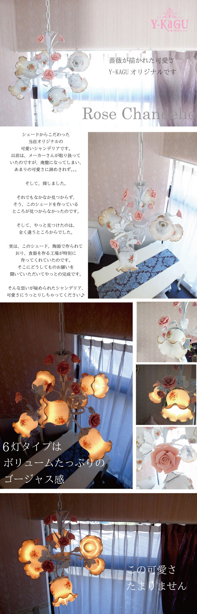 | 製品名: | ローズが可愛い♪ローズ吊り下げ6灯シャンデリア |