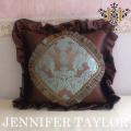 ◆光沢のある上質なジャガード織の生地を使用したジェニファーテイラー最高級シリーズです。落ち着いた色合いに、洗練されたゴージャス感が漂います。◆人気の秘密は女性の心を擽るフリルを使いエレガントなデザインと実用性を兼ね備えた商品にあります。◆高級感の有る生地にフリルをあしらったとってもお洒落なクッションです◆カバーはファスナーが付いて取り外しOKです。◆同じ生地の小物入れとテーブルランナー・ダストボックス・ティッシュボックスもございます。