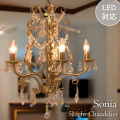 ロマンティックな照明で癒しの空間を クリスタルガラス シャンデリア 5灯(ソニア) 輝くリーフモチーフとアームが美しく華やかなシャンデリア。 5灯の温かなダークゴールドがおしゃれな雰囲気を演出します。 シーリングタイプなので取り付けも簡単。 コンパクトだけどしっかり5灯の明かりを持ったソニア。 寝室や、ダイニングテーブルの上への設置にもおすすめです。