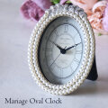 年代を感じさせるアンティークデザイン Mariage マリアージュ パールリボン オーバル 置き時計 アンティーク風 お部屋を優雅な印象に変えてくれるマリアージュシリーズの置時計。 上部に可愛らしいリボン、枠にパールのような装飾を施しています。 小ぶりのミニサイズなので置き場所を選びません。 細部にまでこだわった装飾がヨーロピアンなインテリアを演出します。