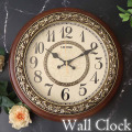 アンティーク風の掛け時計です。木目のデザインにゴールドの花の装飾と、ストーン付が付いており上品な仕上がりになっております。見やすい文字盤で使い勝手もよく、連続秒針なので、音も気にならず日常生活に溶け込みやすいデザインです。