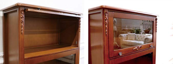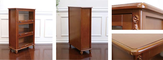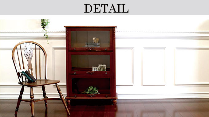 「見せる収納」-フラップ式2WAY ショーケース・3段(ブラウン)ー今はおしゃれに飾ってしまえる「見せる収納」が魅力的なインテリアとして人気急上昇中。お部屋をおしゃれに、でも物ってすぐに増えちゃうからなかなか片付かないのが現状・・・。そんな時に便利なのがこちらのフラップ式のオープン棚。扉を上に上げておけばオープン棚として使うことができ、ちゃんとしまっておきたい物なら扉を下ろしてショーケースのように。そんな2WAYで楽しめ、ディスプレイ感覚で収納を楽しむことができます。そして何よりも、このおしゃれでアンティークなデザイン。どこか懐かしい趣は落ち着いた佇まいを空間に与えてくれそう。食器棚、本棚、ディプレイスペース、様々な使い方で貴方らしい「見せる収納」を楽しんでみては?※【必ずお読みください】こちらの商品は主に輸入家具となっており、海外での生産となります。また、ヨーロッパ・ドバイ・アメリカなどといった海外向けに作られている商品となります。ほとんどが手作り・手塗装で制作されております。一点一点が手作業のため、塗装・仕上がりには個体差がございます。弊社での検品を行い、修正できる部分は修正してからの発送をしておりますが、アンティーク塗装仕上げ(離れると見えない程度)となっている個所がございますこと、予めご理解・ご了承の上、お買い求めください。