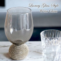 キラキラ輝く持ち手にうっとり。とってもおしゃれで高級感あるワイングラス。カラーはシックなスモーキーカラー。キャンドルホルダー、フラワーベースとしてのご利用にもおすすめです。※こちらは食洗器のご利用はお控えください。また、手洗いで現れた際も完全に乾燥させてから収納棚へは収納してください。