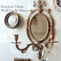 宮殿に飾られているような気品ある美しい壁掛けタイプのミラー付きのキャンドルホルダー。こちらは2灯タイプで存在感抜群。キャンドルはもちろん、キャンドル型のLEDライトなどを灯しておしゃれな雰囲気作りがお楽しみいただけます。壁掛ミラーや、スコンスとしてご利用いただくのもお勧めです。