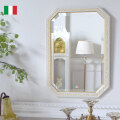 玄関やお部屋の鏡をお考えの時におすすめ。20mmの面取り加工が施されており、高級感抜群。厚みのあるミラーを使っているので歪みもなく快適にお使いいただけます。イタリアの老舗メーカーBertozzi(ベルトーチ)社で作られた由緒正しい本場のイタリアミラーです。ホワイト×ゴールドの美しいフレームが高級感を感じさせます。48×68cmの大きめサイズです。デザインも運気を呼ぶと言われている風水でも人気の八角形タイプ。風水では良い気を溜め、悪い気を跳ね返すと言われており、幸運アイテムとしても人気があります。引っ越し祝いなどにも喜ばれる縁起の良いアイテムです。
