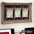 フレンチテイストのおしゃれなフォトフレーム。3枚分の写真を飾れます。 家族との思い出や、お子様の成長など、様々なシーンを素敵に飾ってくれます。 家具を変えるのは大変だけど、壁面やちょっとしたところを変えるだけで、お部屋がぐっとおしゃれになります◎ 結婚祝い、出産祝いなどのギフトとしてもおすすめです。