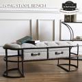 無機質なアイアンとカジュアルさを感じるファブリックの異素材組み合わせがおしゃれなベンチ。座面下にはちょっとした物の収納に便利な引き出し付き。古さを思わせるユーズド感が魅力のヴィンテージなテイストで、個性ある空間を演出してください。デザイン性だけでなく、家具としての機能も考慮して作られたインダストリアルなインテリアをお楽しみいただけます。