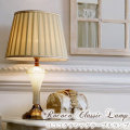 ロマンティックな照明で癒しの空間を ロココクラシック テーブルランプ フリンジシェード シャンパンカラーのプリーツシェードにゴールドのレースが美しいスタンドランプ。 ポイントはスタンドのガラス部分。 フレーム部分は気泡が入ったデザインで、そちらにも灯りが点くようになっています。 気泡が反射してキラキラと綺麗です。 明るめなので暗くなりがちな場所には特におすすめ。 灯りをつけていない時も、雰囲気がありインテリアとして素敵です。