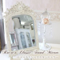 鏡を見る時に特別な気分が味わえそう クラシックテイスト スタンドミラー アンティークホワイト 女性のおしゃれに欠かせない卓上ミラー、せっかくならおしゃれなものを選びたいもの。 シャビー感あふれるロココなフォルムが美しい卓上ミラー。 鏡やフレームの隅々にまで施されたロココ調装飾が目を引きます。 ゴージャスなフレームで、鏡を覗いた時に顔に品格を与えてくれる逸品です。 華やかなインテリアに負けない存在感があるので ロココ調や姫系の可愛いインテリアで統一している方におすすめです。