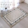 優雅でおしゃれなスタイルフランス コットン100% ラグマット(玄関マット) TRINITY NOIR 70×50cm 上品なベージュ×ブラックで織り上げた高級感溢れるラグマット。 エレガントな絨毯として知られており、有名百貨店などで人気のあった 「スタイル・フランス」のデザインを復刻いたしました。 コットン100%のモケット生地で、とても柔らかく心地よい肌ざわりです。 フランス製の珍しいデザインで玄関やお部屋の素敵なアクセントになります。