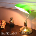 光の角度が選べる人気アイテム アンティークレトロ バンカーズランプ(バンクランプ) 真鍮の美しいボディとガラスのシェードが味わい深いランプ。 アメリカやイギリスなどの欧米映画やビデオの 図書館や学校、オフィスの机上のワンシーンで見かけた方も多いはず。 緑色のシェードが特徴的なバンカーズランプ。 その名のとおり銀行の支配人など上級職のデスクに置かれていたことが由来と言われています。 シェードが動くので、光の角度を変えることができるのも魅力の一つ。