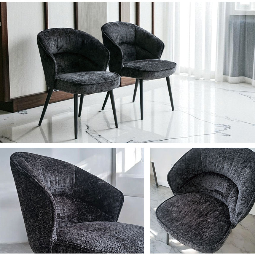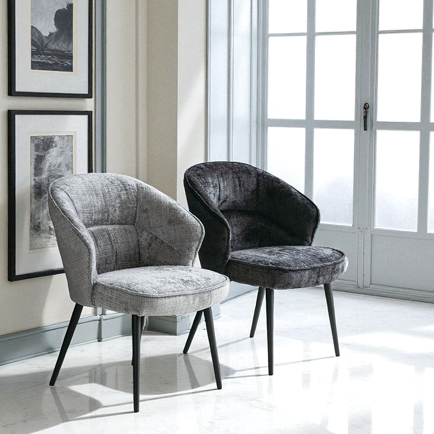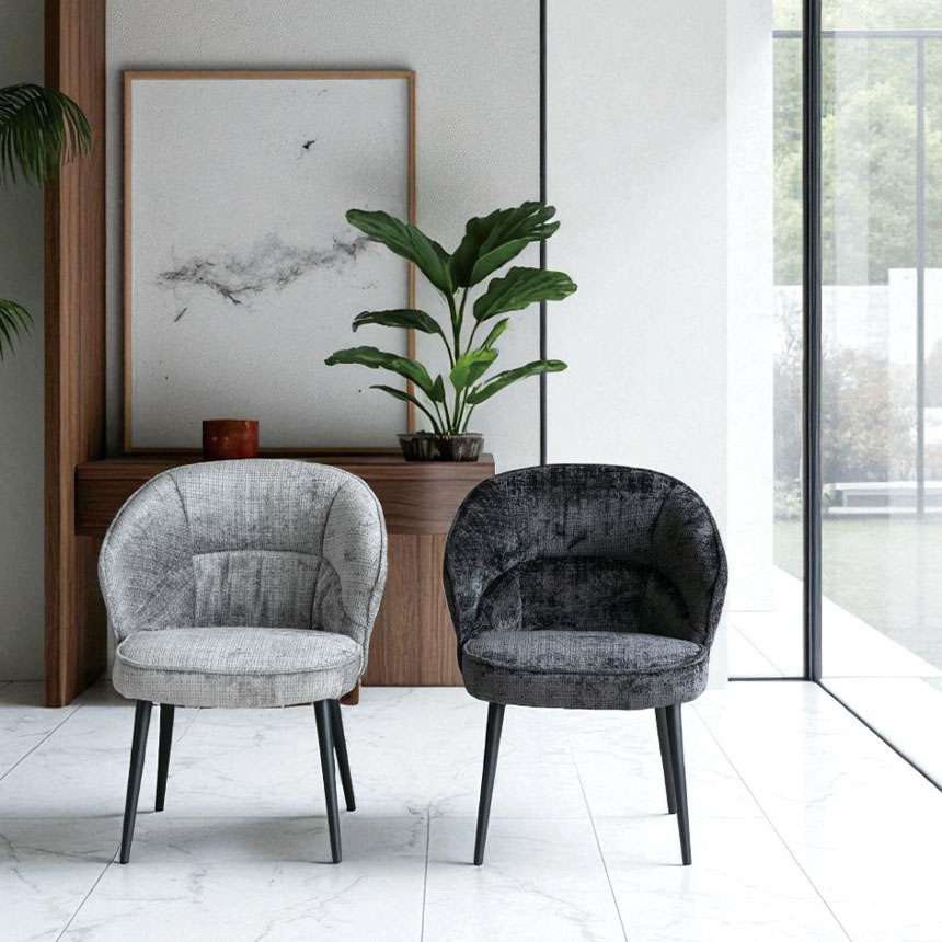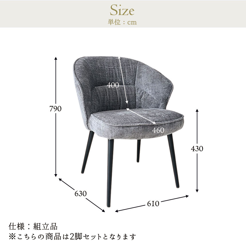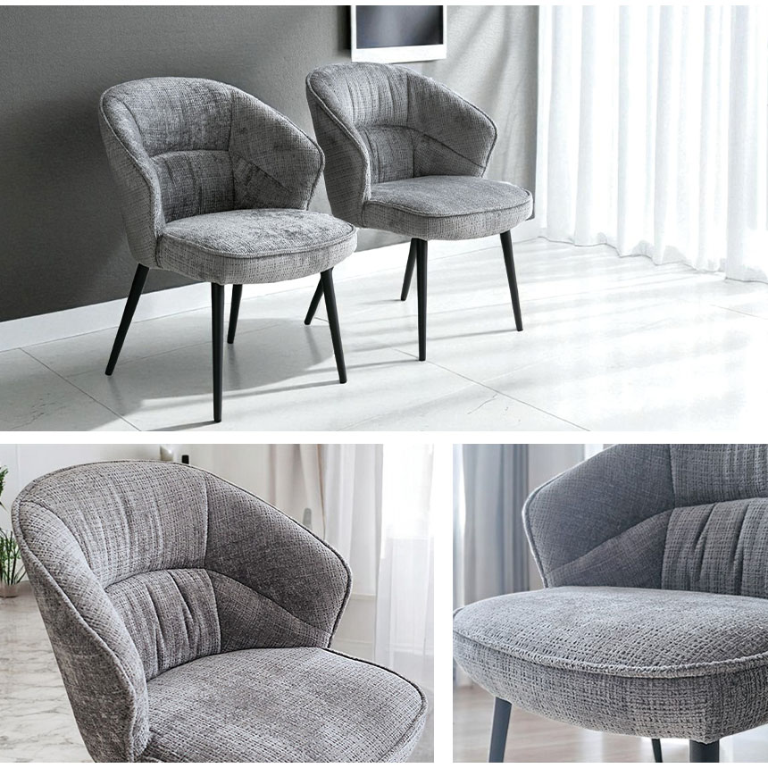 ゆったりとした時間を過ごしたいあなたに。 背中を包むような丸みのあるフォルムと、思わず深く腰掛けたくなるようなふっくらとした座面が魅力のダイニングチェア「ELLY(エリー)」。 このチェアの魅力はなんといっても1人掛けソファにも匹敵する座り心地。 また、おしゃれなスチール脚との組み合わせがモダンな印象を与え、リビングやダイニング、ワークスペースなどさまざまな空間に溶け込みます。 カラーは落ち着きのあるブラックとグレーの2色展開。 2脚セットなので、並べて置くだけで統一感のあるコーディネートが完成します。