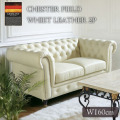 イギリス発祥の伝統あるチェスターフィールド。滑らかで上品な質感のドイツ製牛本革を全面に使用した贅沢な2人用ソファです。明るくラグジュアリーな印象を与えるアイボリー。鋲止めとボタン留めがおしゃれなデザインです。固めの座面で長時間座っても疲れにくく快適な座り心地。本革ならではの独特の風合いが高級感あふれる空間を演出します。