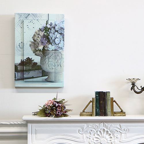 クラシックでおしゃれなインテリアにぴったりのエレガントなウォールアート。 お部屋を彩るウォールアートはいろいろな方法がありますが、こちらは、キャンバス生地とガラス面の両方にそのまま絵を転写しているので、透明感をもたせ、そしてキャンバス地が持ったマットな感覚のアシメトリーな素材感を楽しんでいただけます。 ガラスに描かれた絵とキャンバスの異素材が魅力的。 今までにない額絵とは違った壁面をお楽しみください。