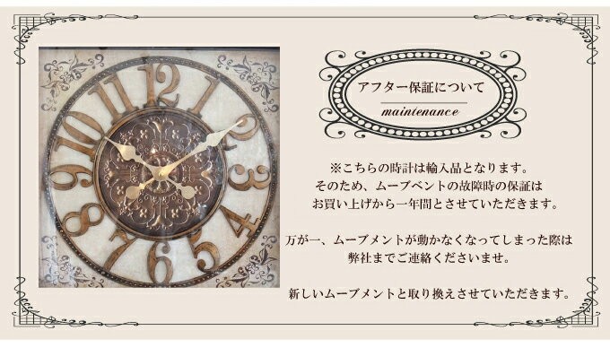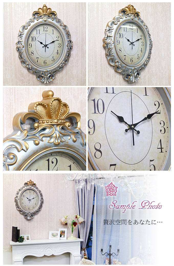 見やすい文字盤で実用サイズのゴージャスな時計です。 探すとあまりないおしゃれな時計。お客様たちからのお声も多々いただいておりました。実際に私どもも探してみると確かにない。 クラシックでゴージャスな時計って、案外レアで入手困難した。 海外での買い付けで、時計を探す目的で買い付けに行き、やっと出会えたのがこちらの時計。 また、見た目とは違って、軽量樹脂でてきているため設置も安心。 こだわったデコレーションの文字盤もおしゃれです。 そして、このお値段。贈り物にも喜ばれる一点です