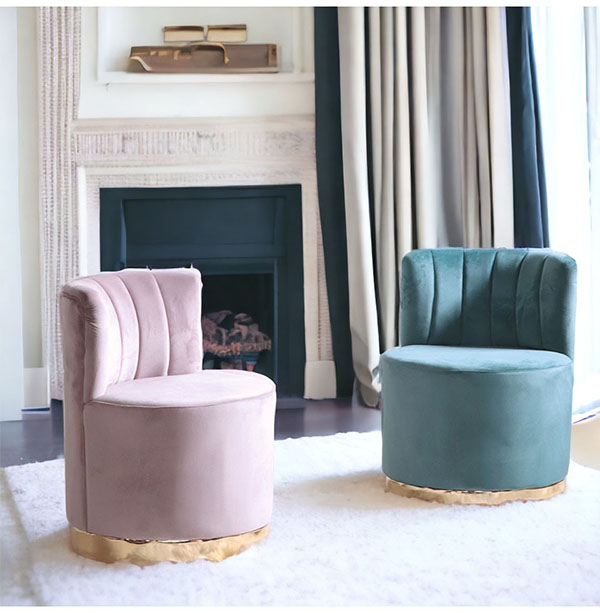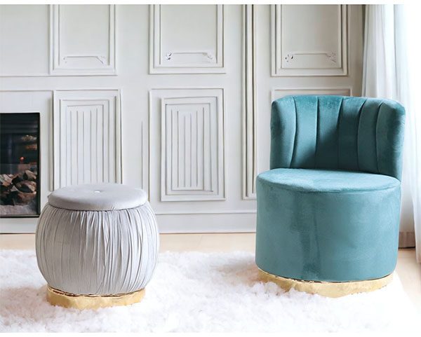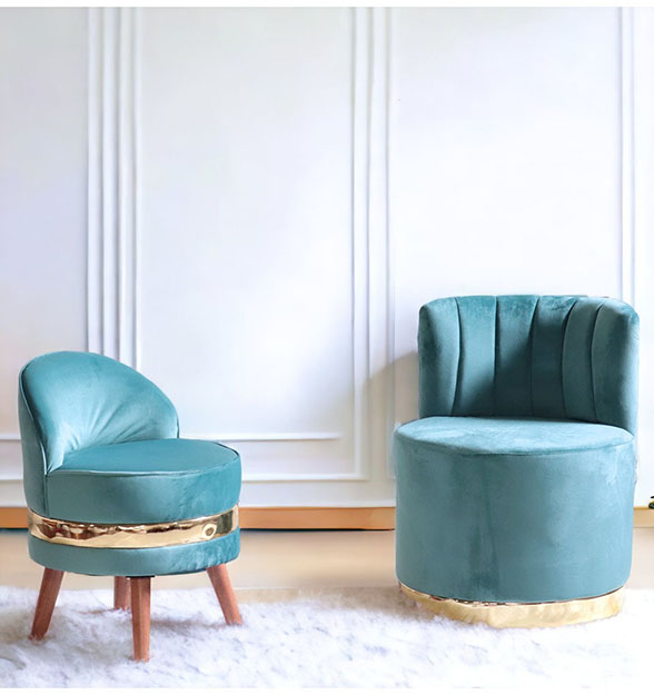 気品漂うブルーグリーンのカラーで大人フェミニンな空間を作るドレッシングチェア。その名の通り、ドレッサースペースでお使いいただくのに最適なコンパクトで軽量なチェアです。コロンとしたデザインでインテリアをラブリーにコーディネートできる、海外インテリアのようなおしゃれ空間を演出してくれます。リビングや玄関先のアクセントチェアとして使うのもおすすめ。肌ざわりの良いベルベット生地を使い、ゆったり心地よく座れます。色彩豊かなインテリアで、空間を華やかに演出します。