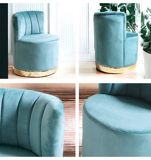 この可愛さ見たことない マカロンシリーズ ドレッシングチェア グリーン 気品のある色鮮やかなブルーグリーンで大人フェミニンな空間を作るドレッシングチェア。 その名の通り、ドレッサースペースでお使いいただくのに最適なコンパクトで軽量なチェアです。 リビングや玄関先のアクセントチェアとして使っても素敵! 肌ざわりの良いベルベット生地を使い、心地よい座り心地となります。 軽いので移動もしやすく、急な来客時のサイドチェアとしても最適。