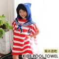 プールやレジャーに!ポンチョのように被れるタオル 吸水速乾 キッズプールタオル フード付き マリン レッド すぽっと被れるフード付きタオルです。 ラップタオルよりも着替えやすいので小さなお子様でも簡単に着れます。 吸水力と速乾性に優れた生地で、お風呂上がりやプール、水遊びなどのレジャーでも大活躍します。
