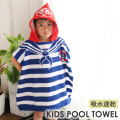 プールやレジャーに!ポンチョのように被れるタオル 吸水速乾 キッズプールタオル フード付き マリン ブルー すぽっと被れるフード付きタオルです。 ラップタオルよりも着替えやすいので小さなお子様でも簡単に着れます。 吸水力と速乾性に優れた生地で、お風呂上がりやプール、水遊びなどのレジャーでも大活躍します。