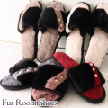 ふわふわのファーがおしゃれでゴージャスなスリッパ。ブラックのストライプとパールがエレガントです。暖かく履き心地も良く、冷え性の方には強い味方。オープントゥだから足が蒸れにくく、長時間快適にお使い頂けます。ご自宅用はもちろん、ご家族・お客様用にもおすすめ。ギフトとしても喜ばれるアイテムです。カラーは「ブラウン」「レッド」「ホワイト」「グレー」「ピンク」の全5色。