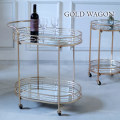 ダイニング空間に華やぎを ゴールドワゴン Lサイズ 優雅で格式の高いヨーロピアンスタイルのゴールドワゴン。 柔らかなオーバルのデザインとミラー天板がエレガントです。 食器やボトルをしっかり載せられるLサイズ。 キャスター付きなので実用性もあり、インテリアとしてはもちろん 日常生活のご利用にも便利です。