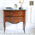VENECHIA ベネシア 2段チェスト(ナイトテーブル) 当店人気のマホガニー家具「VENECHIA ベネシア」シリーズ。 フレンチクラシックなテイストに仕上げた2段チェストです。 重厚感とアンティーク感のあるデザインがポイント。 ベッドサイドに置いたり、リビングや玄関先のアクセントとして置いたりと、幅広くお使いいただけます。 重厚感あふれるシックで落ち着いた空間を演出してくれます。