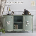 優しいフレンチグリーンに癒される ManonRococo マノンロココ ロイヤルフレンチサイドボード 幅150cm グリーン 優しいフレンチグリーンがとってもおしゃれなサイドボード。 当店オリジナルの収納家具です。 真っ直ぐなフォルムと扉のアールの組み合わせは アールデコの様式を再現し、繊細な装飾を木素材で作っているのがポイントです。