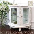 人気アイテムが帰ってきました Y-KAGUオリジナル マホガニー材使用 ManonRococo マノンロココ ハーフムーンショーケース ホワイト 憧れのショーケースをさりげなく、実用的にお使いいただける半円タイプの飾り棚。 高さもないので、サイドボードとしてもお使いいただけるサイズです。 両サイドからも出し入れすることができるのでとっても便利。 すっきりとした半円タイプは、コーナー用としてなど 場所を取らずにデットスペースの有効活用にも最適です。