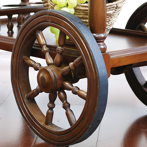 見た目だけじゃない!本格的来なワゴン作っちゃいました Y-KAGUオリジナル マホガニー材使用 ManonRococo-マノンロココ フレンチワゴン(ブラウン) 伝統的で歴史あるクラシックなイタリアンスタイルで作られたキッチンワゴンです。 イタリア家具との相性も良いように少し明るめのブラウンで作っております。 下部にはワインホルダーが付いており、ワインやボトルなどを固定して移動できる安心感があります。 また、テーブルスペースは食事を運ぶ際に落下しないよう、トレーのように溝を作りました。 ホームパーティや、お客様への仕出し時に 見た目もエレガントなテーブルサービスはいかが?