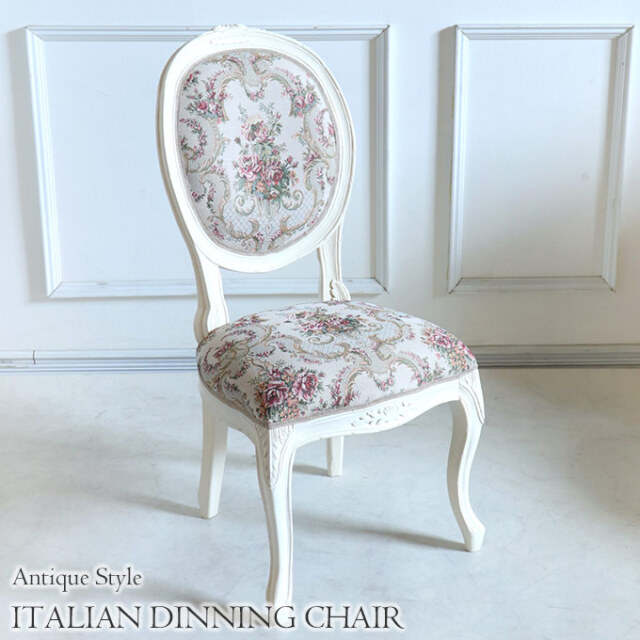 ドールチェアのデザインを実用的なチェアに アンティーク調 イタリアンダイニングチェア ホワイト 猫脚×ホワイトのクラシカルなコンパクトチェアです。 ドールチェアにあるデザインを実用的なチェアとして再現した、置くだけでも絵になるデザインです。 幅42cmとコンパクトなサイズで 通常のダイニングチェアに比べて小さめなので場所を取らずに置けます。