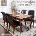 毎日の生活に欠かせないダイニングセット。Y-KAGUオリジナルデザインのベネシアシリーズから生まれた、アンティークの味わいを持つおしゃれなダイニングセットです。 テーブルは伸長式のサイズが変えられるタイプです。大人数で集まる時など、必要な時だけ広げられるのが嬉しいポイント。 アンティークのリメイクの技法を使った仕上げで、新しいものですがアンティークのような味わいを出しています。使い込んでしっかりと味を出すことのできる無垢の一枚板を使用しております。 ダイニングチェアのポイントは背面に装飾されたライオンのハンドル。イスを引くときの取っ手にもなり、アクセントとしても抜群のかっこよさを誇ります。※ハンドルはあくまで補助的なハンドルとしてお使いください。思いきり引っ張ると生地のよれや、破損に繋がります。