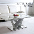 クラシックにもモダンにも合うハイセンスなデザイン 大理石調 センターテーブル120cm ホワイト 重厚感たっぷりの大理石調センターテーブル。 デザイン性のある脚にホワイトマーブル柄がとても華やかです。 ワンランク上の上質な空間を求めている方に最適な高級感溢れるリビングテーブルです。