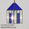 ステンドガラスの幻想的な灯りが美しいペンダントライト。青色の屋根の家の形をしたデザインがクラシカルでかわいい天井照明です。おしゃれなカフェのテーブルに吊り下げる照明をイメージして作りました。屋根にはグラニト、壁にはウォーターと呼ばれる表状を持つガラスを使用しています。透明なガラスだけを組み合わせて、軽やかな印象を与えるデザインです。『どこか懐かしい、でも新しい』をコンセプトに、ステンドガラス専門デザイナーがデザインした作品です。19世紀末のアール・ヌーボーの香りを残しながら、現代アートのエッセンスを加えた、おしゃれで馴染みやすいデザインが人気です。全体のバランスを熟慮しながら最適なガラス選びにもこだわっています。一つ一つのガラスパーツを、熟練職人が丹念に組み立てました。ダイニング・寝室・内玄関などに吊るすと、レトロでおしゃれな空間に大変身。消灯時もインテリアのアクセントになります。お祝いなどのギフトとしても喜ばれます。
