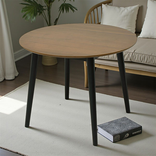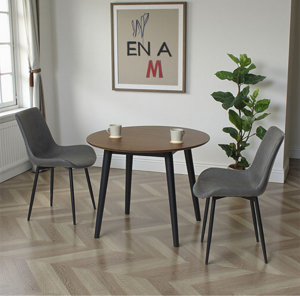 「ダイニングも、ワークスペースも、この3点で完結させる。」そんな思いで組まれたダイニング3点セット。チェアは、身体を包み込むようなカーブシートが特徴で、食事のあとそのままPC作業をしても疲れにくい座り心地を実現。テーブルは、木目のきれいなブラウン天板に、ブラックの丸脚を合わせた円形デザインで、空間に軽さを生み出しつつ、天然木脚がしっかり支えます。ワンルームの食事スペースから、LDKの一角、コンパクトなカフェ風コーナーまで。暮らしの真ん中にさりげなく置けるダイニングセットです。