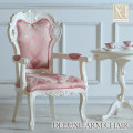 いつも上品で美しい姿を見せてくれるアームチェア。このイスは、フランスのデザインをモチーフにして作り上げました。ハイバックタイプは上品な雰囲気があり、ヨーロピアンスタイルらしい魅力があります。繊細な彫刻に金糸の入った座面生地を使い、その家具の魅力をさらに引き出しています。サロンで使われることの多いアームチェアですが、是非ご自宅で有意義な時間をお楽しみください。