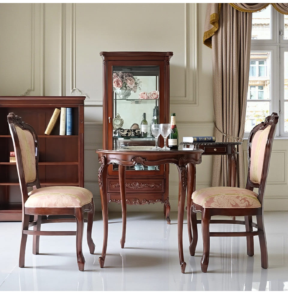 ![]() テーブルとチェアが揃ったとき、 空間はただの「食事の場所」から、 静かに誇れるクラシック空間へと変わります。 限られたスペースでも、妥協しない美しさを。 2人の時間を、きちんと上質に整えるための3Pダイニングセットです。